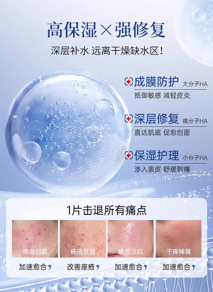 透明质酸钠敷贴 补水保湿创面修复痤痔肌【医美术后】敏感泛红重塑肌肤保护屏障
